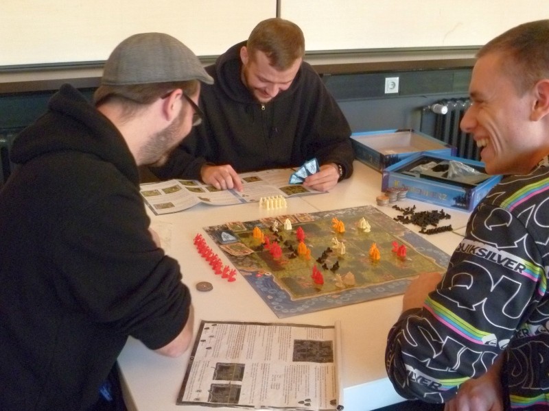 Als am 24.10. die Tore aufgemacht wurden und die Spielbegeisterten zu den Spieltischen der Verlage drängten, waren auch aus dem Kasseler Raum viele Spielbegeisterte dabei, um neue Spiele anzutesten, auf dem Spieleflohmarkt Sammlerraritäten zu ergattern oder Geheimtipps von Kleinverlagen ausfindig zu machen. Einige Spiele sind jetzt schon auf den Spieltischen in den Vereinsräumen von Kassel-spielt ausprobiert worden.